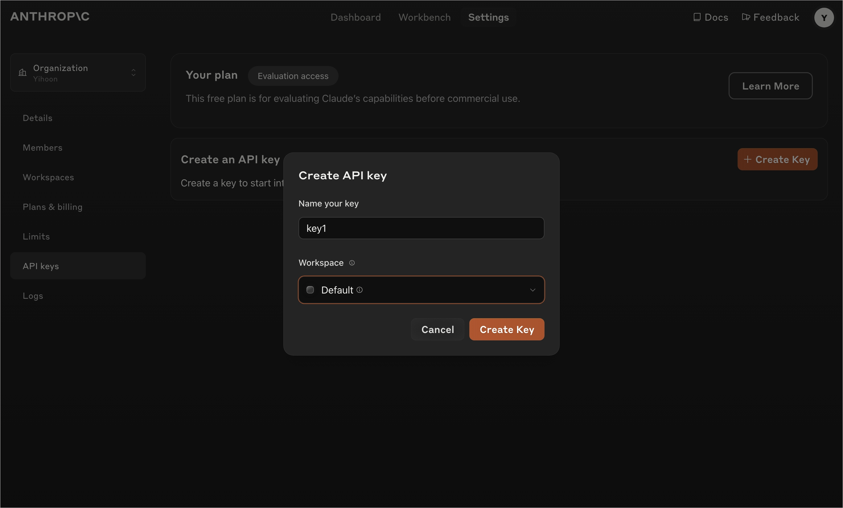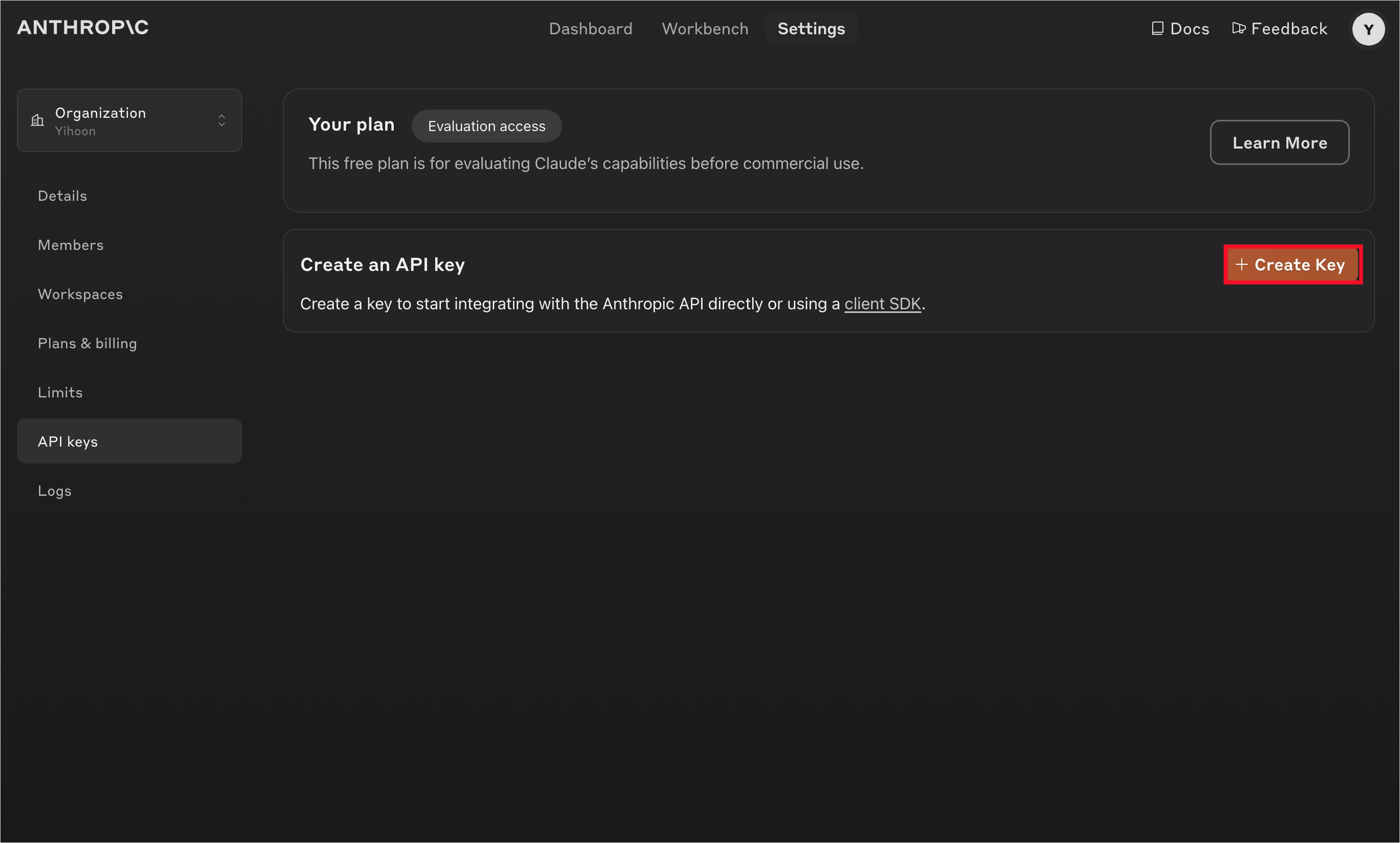 먼저 API 키를 포함한 Anthropic Client 개체를 정의한다.