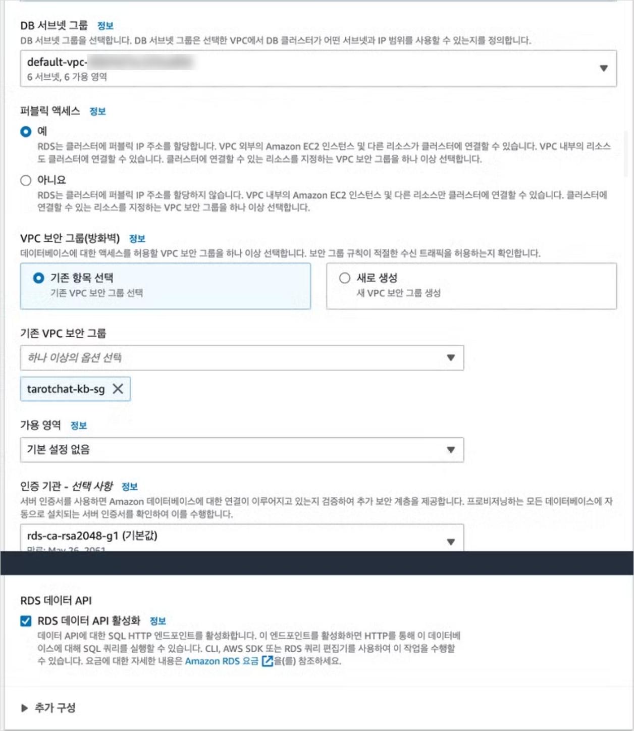 하지만 해당 서비스를 지속적으로 사용하에는 비용이 다소 부담스러웠고, 그 대안으로 Aurora Serverless를 사용하였다. 여기서의 설명을 참고하였음을 밝힌다.
