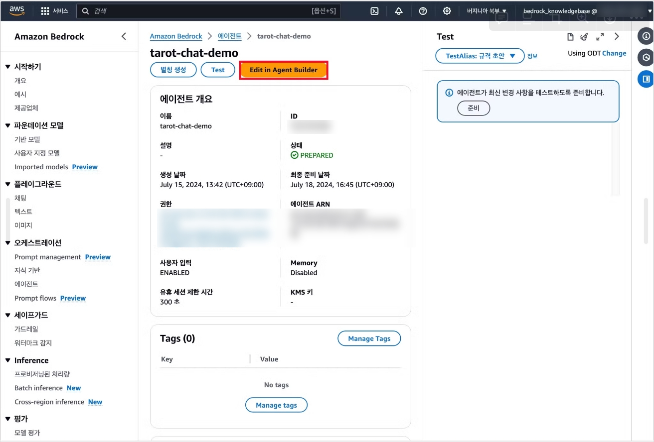 지식기반이 성공적으로 구축되었다면 저장 후 Agent Builder를 종료하고 테스트하면 된다.