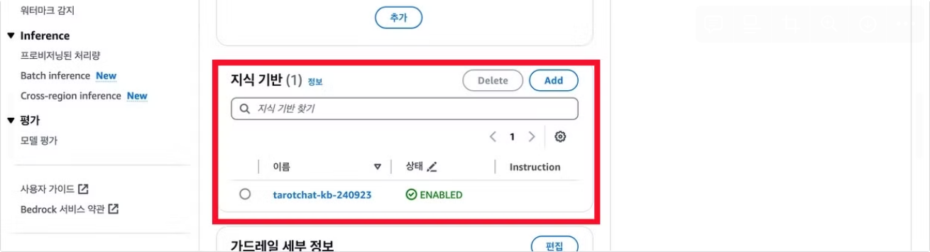 테이블 세팅을 마쳤다면 Bedrock 에이전트에 지식 기반을 설정할 차례이다.