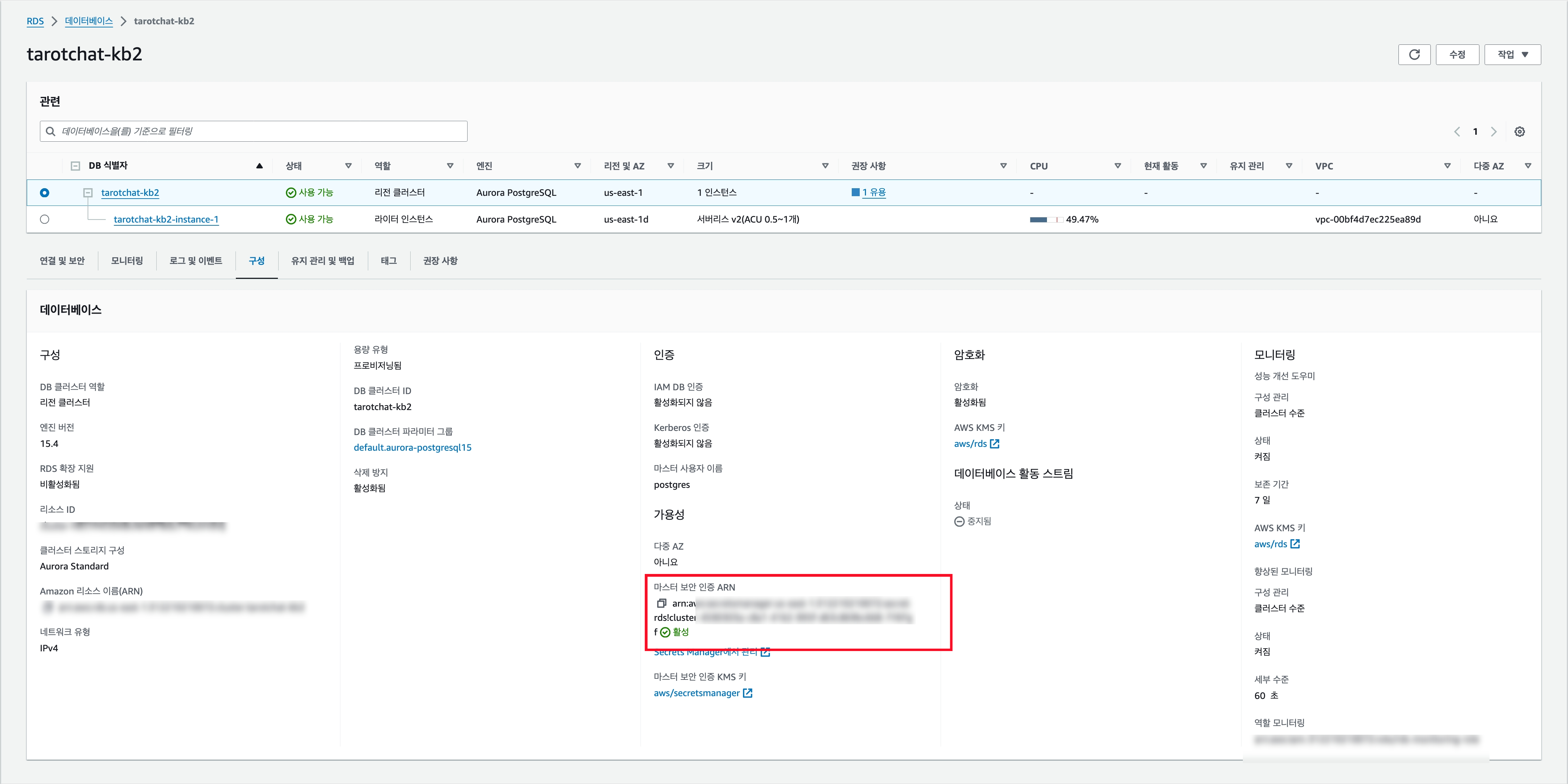 일단 해당 인스턴스와 연결된 Secrets Manager ARN을 복사한다.