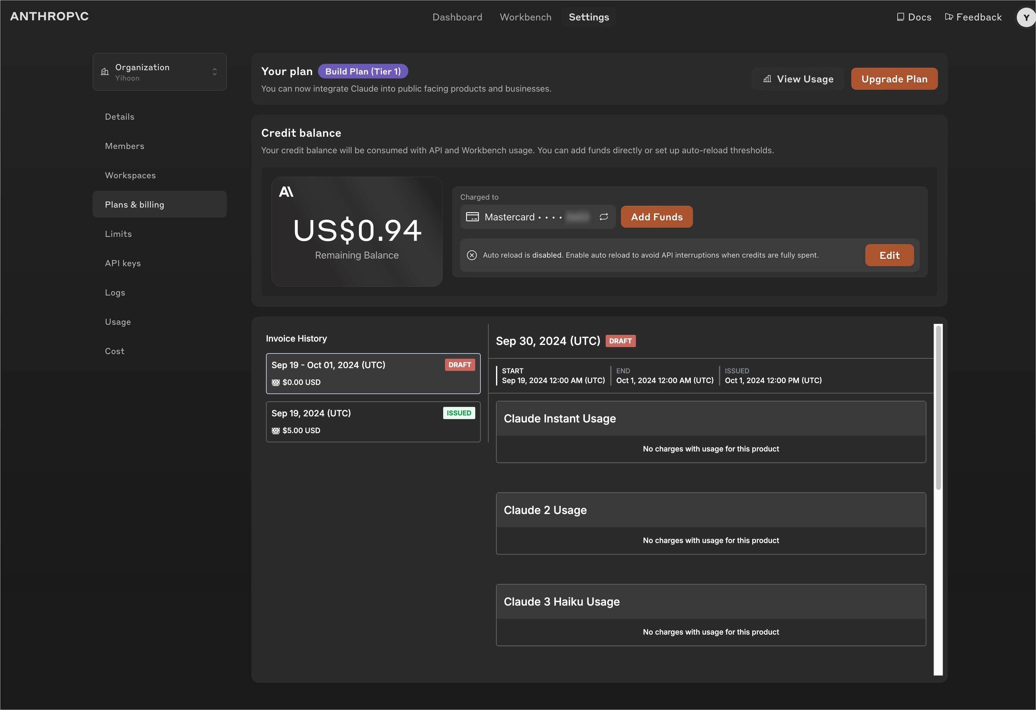 Plans&billing의 Add Funds에서 사용량을 선불로 결제할 수 있다. Pay as you go 체계는 따로 세일즈에 컨택이 필요한 듯하다.