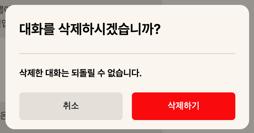 사용자가 개별 대화를 삭제할 수 있도록 한다. 사용자 입장에서의 흐름은 크게 아래와 같다: