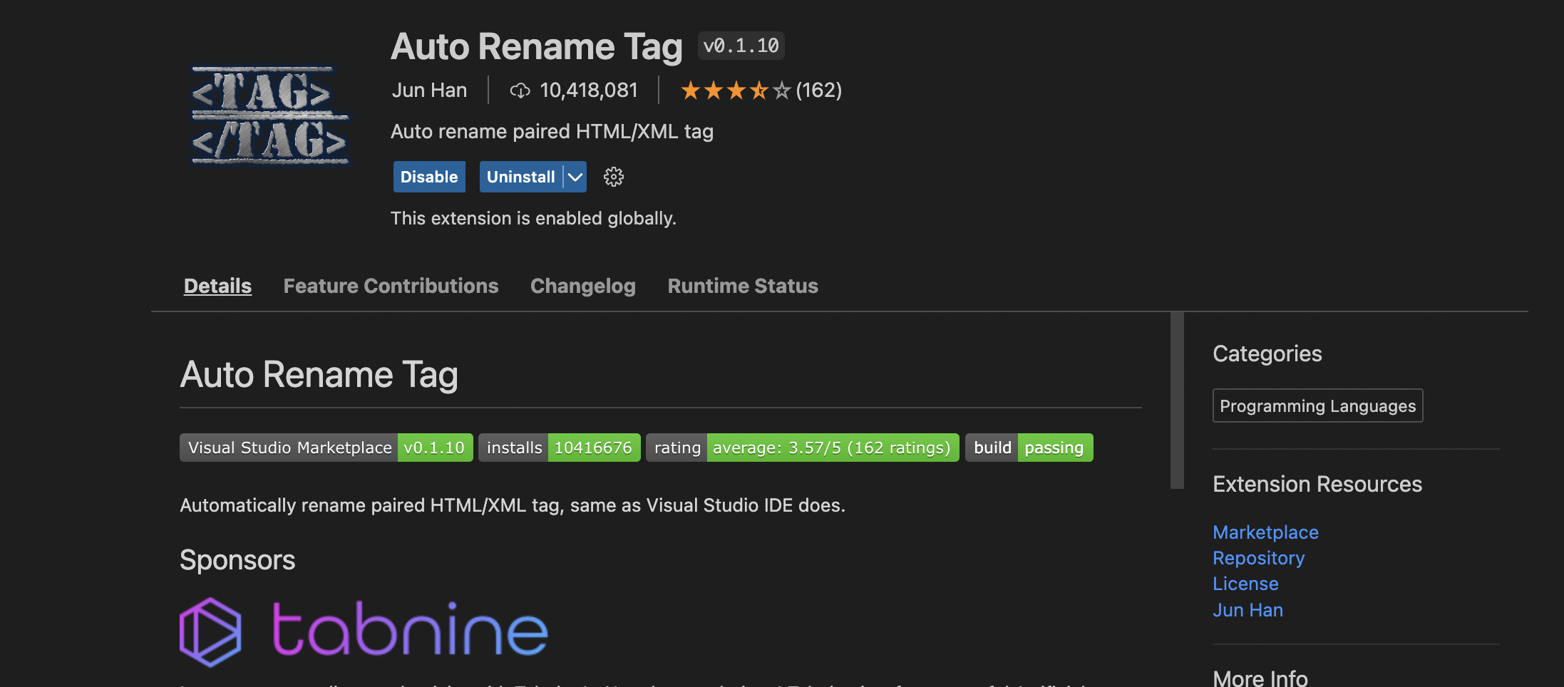HTML 편집할 때 하나의 tag를 다른 tag로 바꿀 때 open tag를 변경하면 close tag가 자동으로 함께 변경된다.