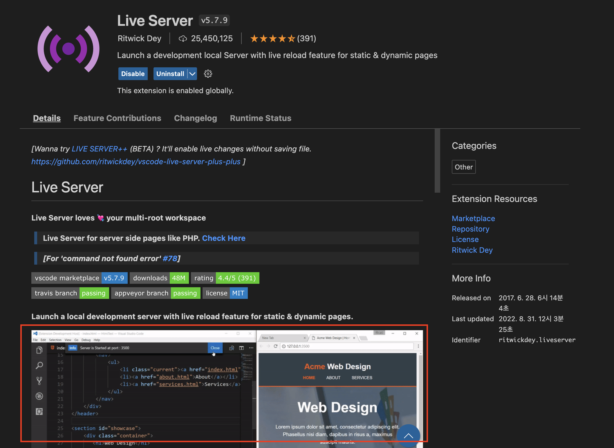 HTML/CSS 변경 후 창을 새로고침할 필요 없이 저장만 하면 자동으로 바로바로 창이 업데이트 되는 모습을 볼 수 있다.
