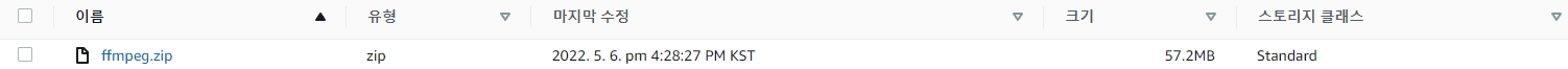 aws lambda layer에 업로드 할 ffmpegs3에 미리 업로드 했습니다.