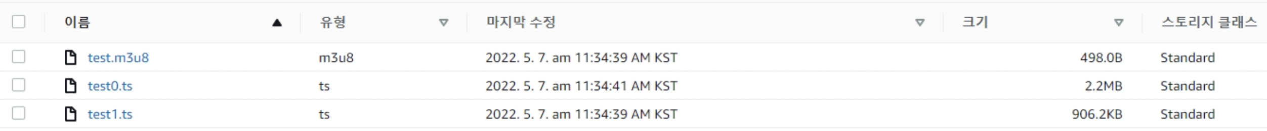 변환된 모든 파일(.m3u8, ts)을 s3에 업로드 ->