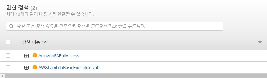 aws lambda에서 s3로 업로드를 할 것이기 때문에 위와 같이 새로운 정책을 생성했습니다.