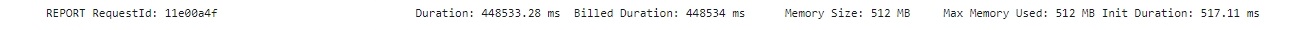 그런데 cloudwatch를 통해 확인해본 소모 시간은 448534ms, 5분이 넘어가는 시간이였습니다.