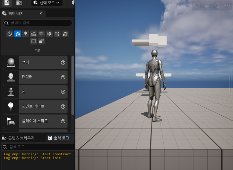 - 게임 인스턴스의 생성자 함수는 에디터 실행 및 게임 실행 시 호출됩니다.