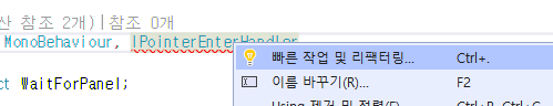 귀찮다고 생각할 수 있지만 상속받는 과정에서 IPointerEnterHandler를 우클릭하면 보이는
