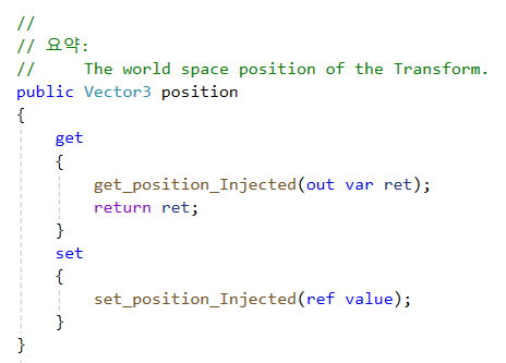 이러한 프로퍼티를 사용하여 손쉽게 가져오고 있다. 또한 get_position_Injected도 따로 존재하지만 거기까지는 이해를 하지 못했다.