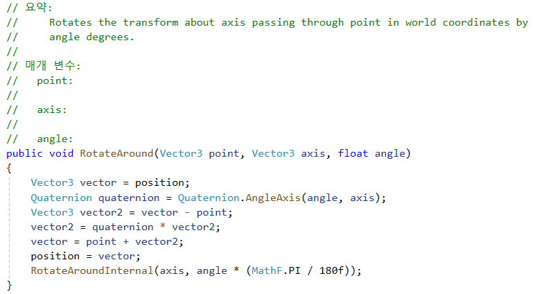 transform.RotateAround()라는 메소드는 어떤식으로 이루어져 있고, 작동은 어떻게 하는지 알아보자.