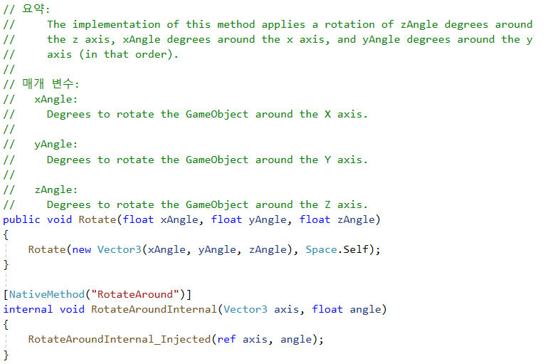 Rotate() 메소드의 하위 메소드로 있는 걸로 봐서 이 7번째 줄로 LookAt()을 대체하는 것 같다.