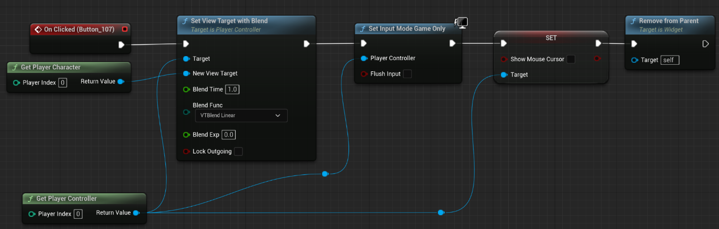 해당 위젯이 뜨면 다음엔 Exit 버튼을 누를시 다시 컨트롤러를 Player로 바꾸겠습니다