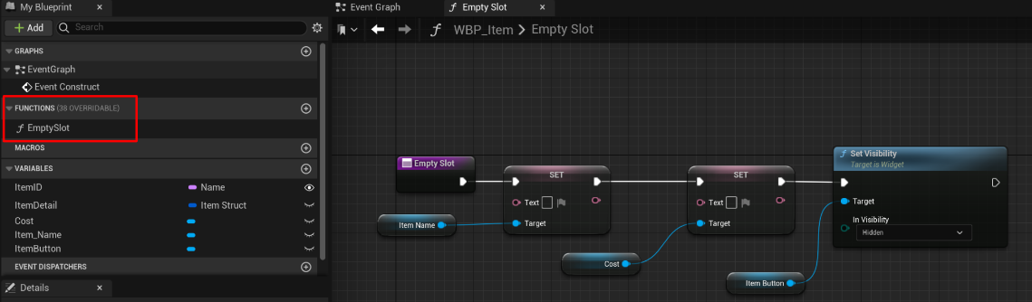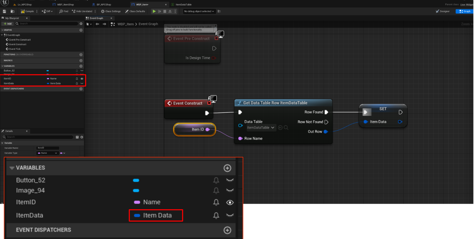 - SetObjectPropertyValue_InContainer 함수는 주어진 객체 ( itemShopWidget ) 의 특정 객체 변수 ( ObjectProperty )에 값을 설정해줍니다