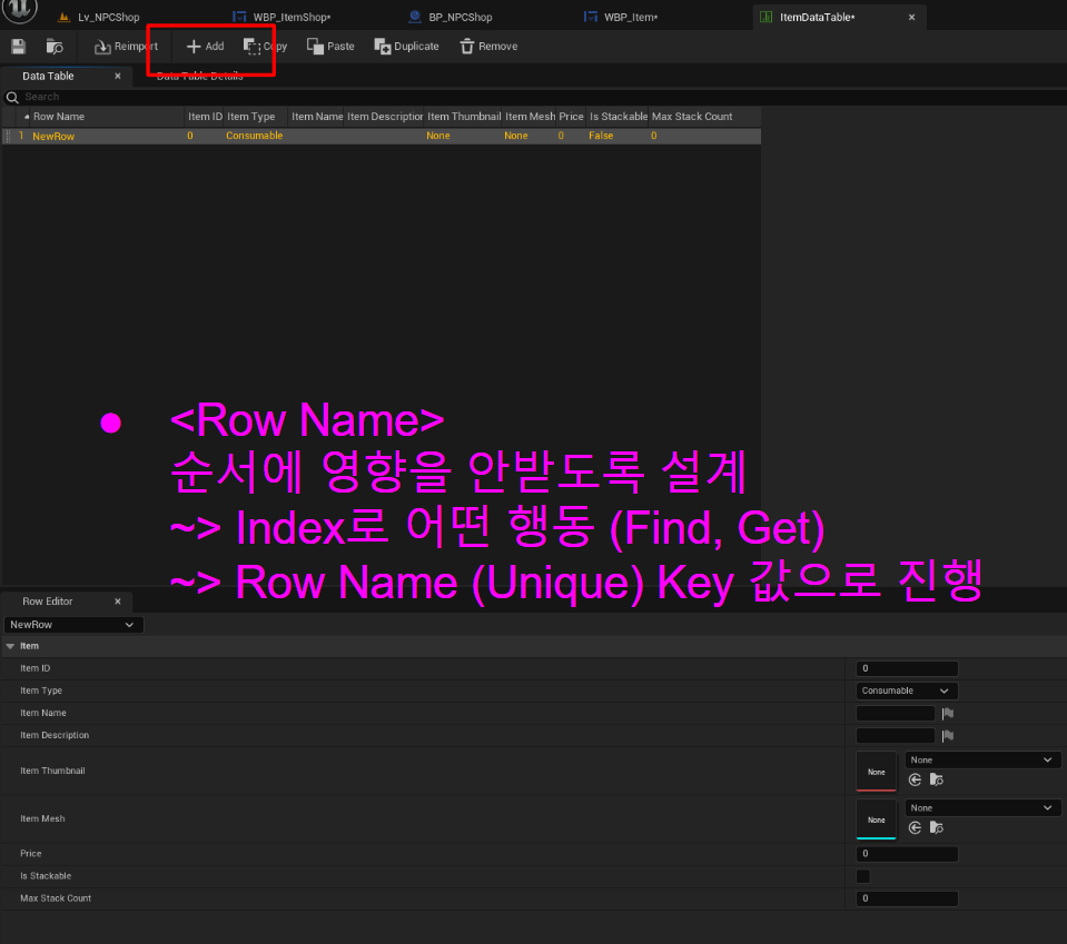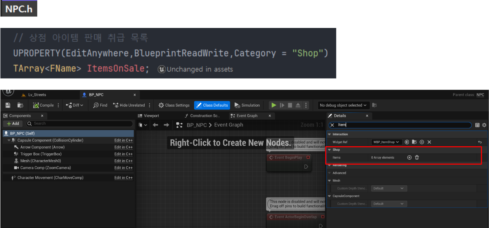 - 여기서는 itemShopWidget 위젯의 OwnerNPC 변수에 현재 NPC 객체 ( this )를 설정하는 역할을 합니다