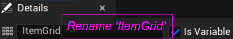- 블루프린트 위젯에 'OwnerNPC'라는 이름으로 설정된 변수 ( Expose on Spanw 옵션이 활성화 된 변수 )를 찾습니다.