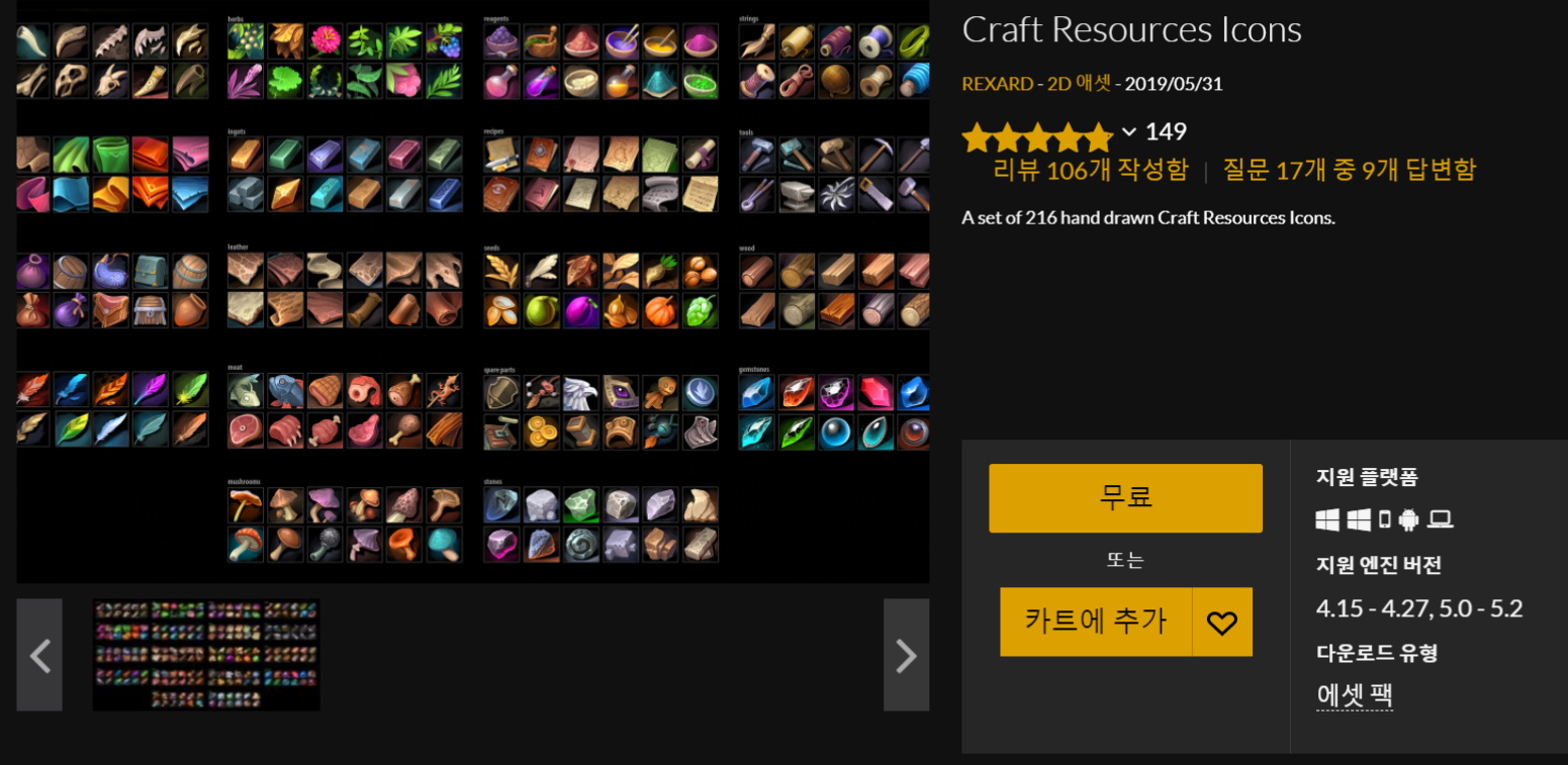 Test용으로 쓰기 위해 마켓 플레이스 가서 해당 아이콘 에셋을 다운 받는다