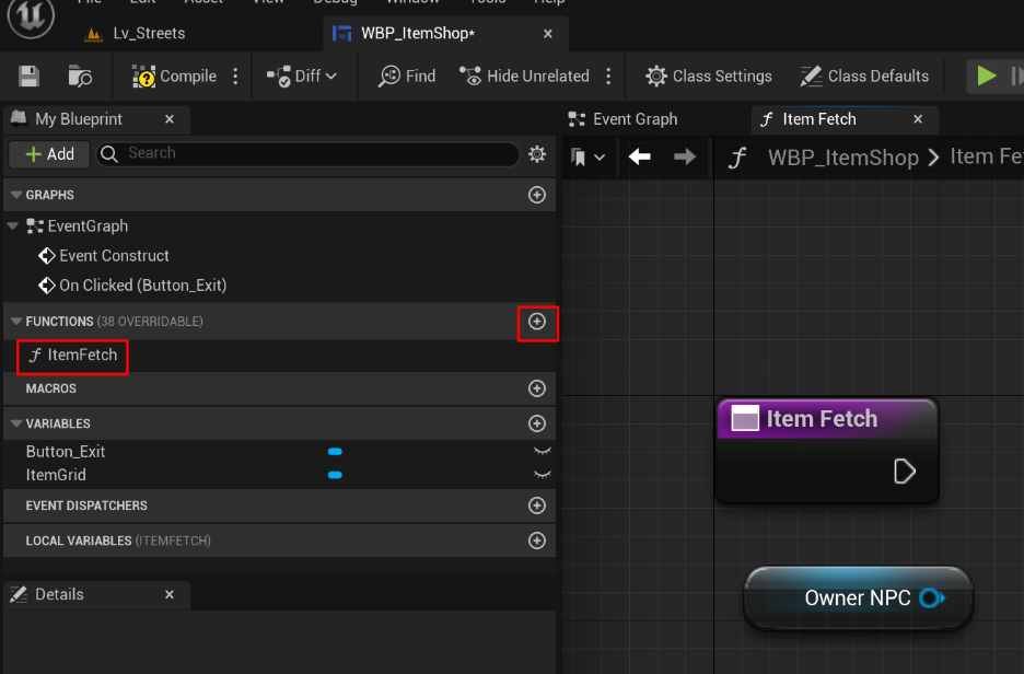 itemShopWidget = CreateWidget<UUserWidget>(GetWorld(), ItemShopWidgetClass);