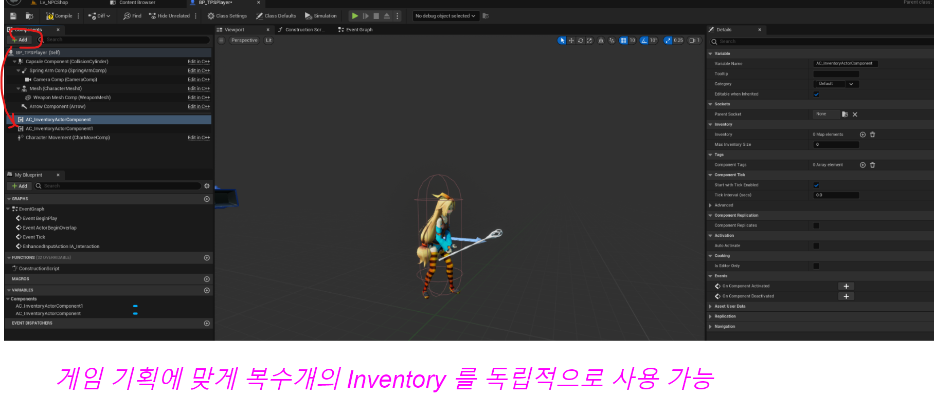 플레이어로직에 Inventory 로직을 제어할 경우