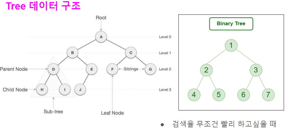 - 트리 구조 ~~~ >> 탐색 >> (빠른 속도) 원하는 데이터 구하기