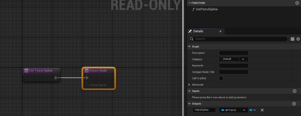 - 해당 Interface를 하나 만들고 Outputs에 PatrolSpline를 넣는다
