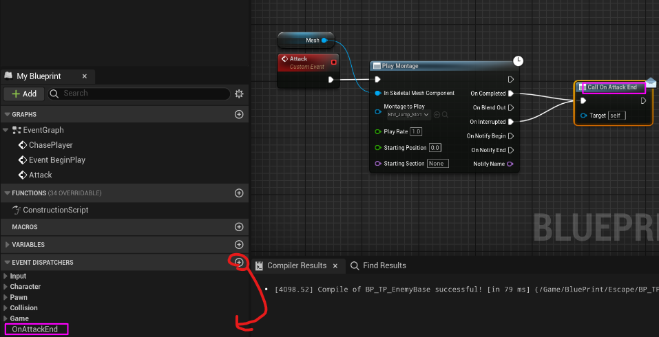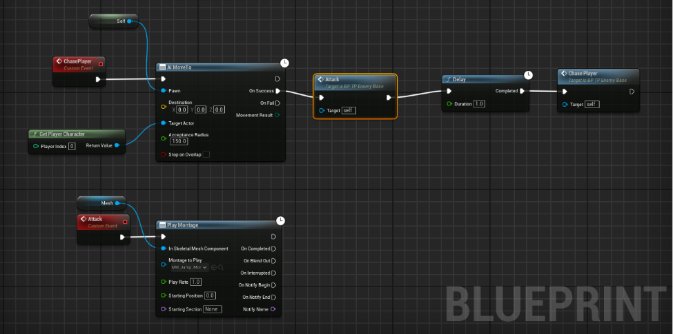 - attack 이라는 또 이벤트를 만들고 블루프린트를 완성한다