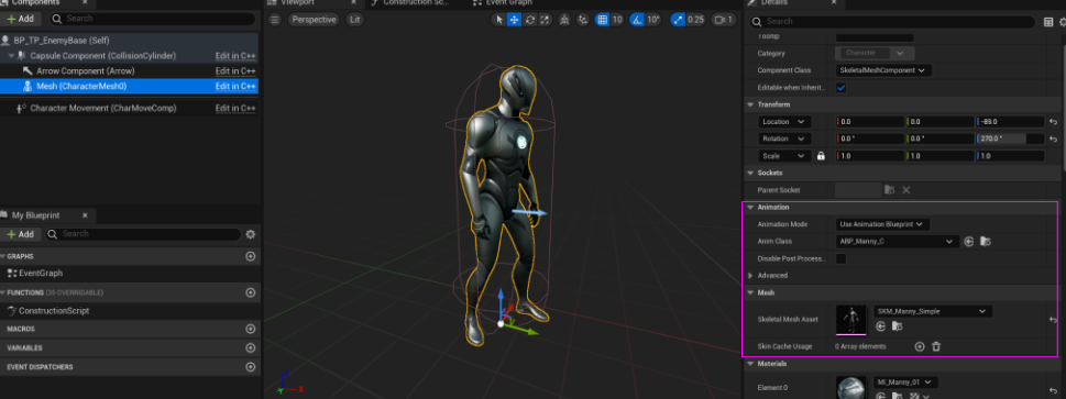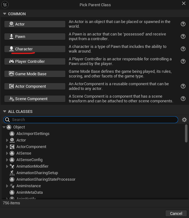 - 간단한 Mesh 처리를 위해 Blueprint로 character를 하나 만든다