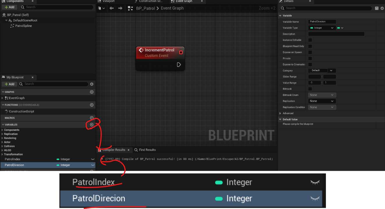 - PatrolIndex, PatrolDirection 이라는 Integer변수를 두개 만든다