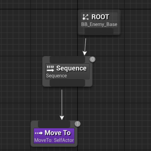 Move To 노드 : AI가 특정 위치(여기서는 SelfActor)로 이동하는 행동을 정의합니다. 이 노드는 적이 목표 지점으로 이동하는 데 사용됩니다.