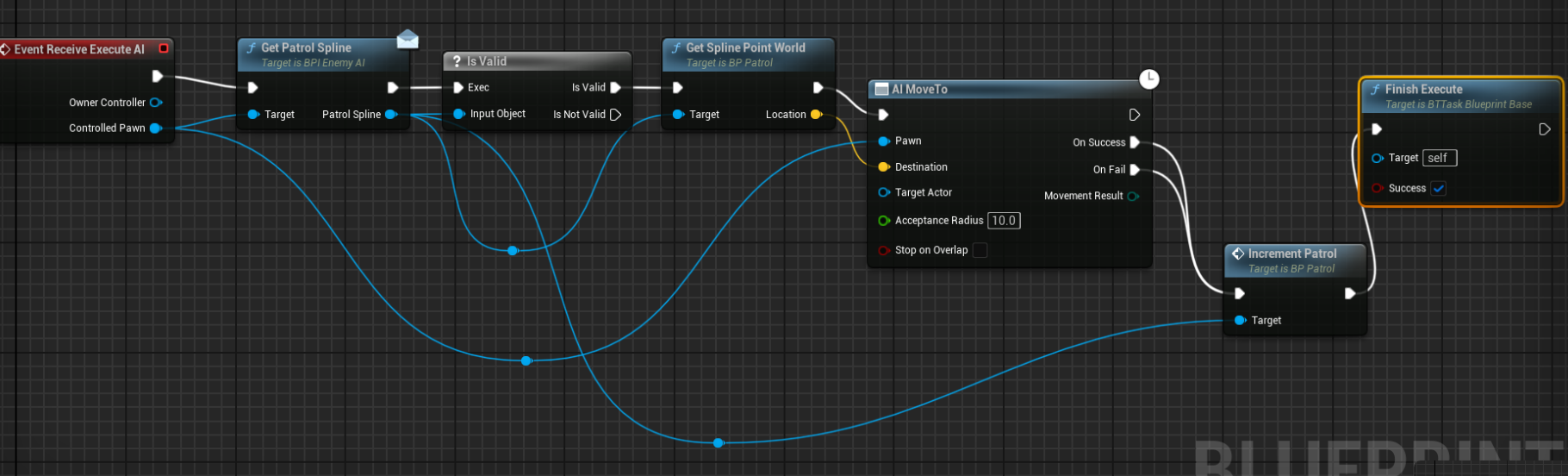 - 나중에 연결하겠지만 일단 지금 ChasePlayer 를 끊고 Patrol이 잘 작동하는지 새로 운 루트를 만든다