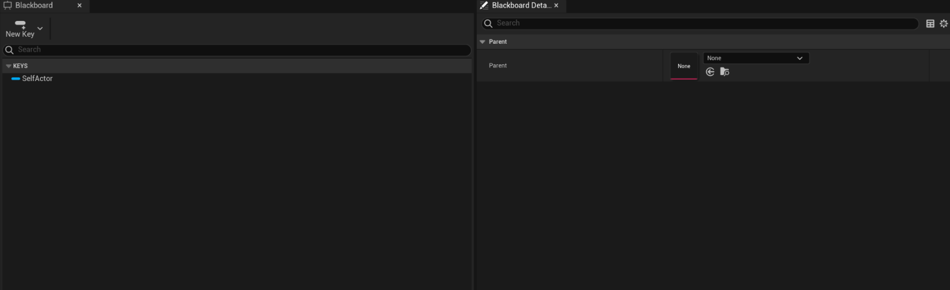 Blackboard (Memory) : AI가 필요한 데이터를 저장하고, 다양한 태스크들이 공유할 수 있는 공용 데이터(Key)를 관리합니다. 플레이어 위치나 체력 등의 정보가 저장될 수 있습니다.