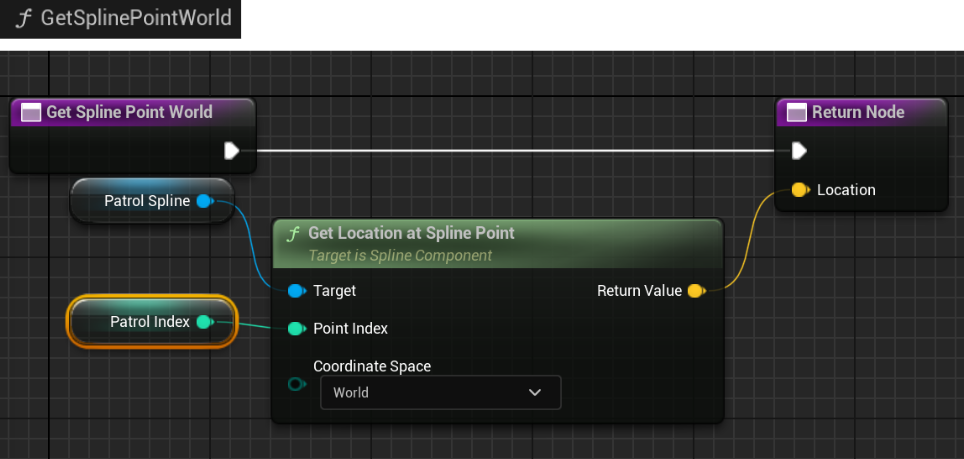 -Get SplinePointWorld라는 이름의 함수를 하나 만들고 블루프린트를 작성하자