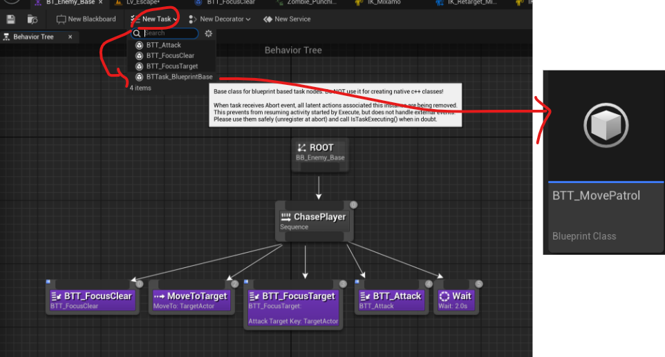 - Task를 하나 더 만들고 BBT_MovePatrol 이라고 이름 짓는다
