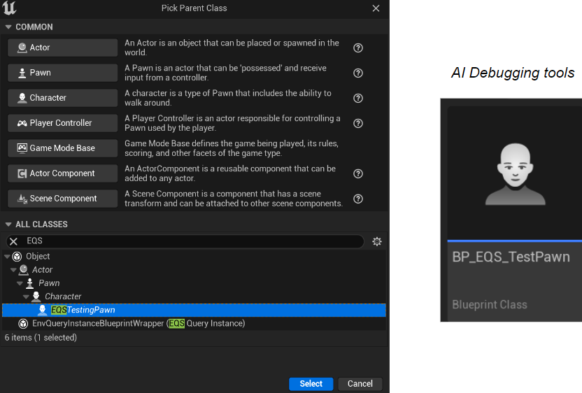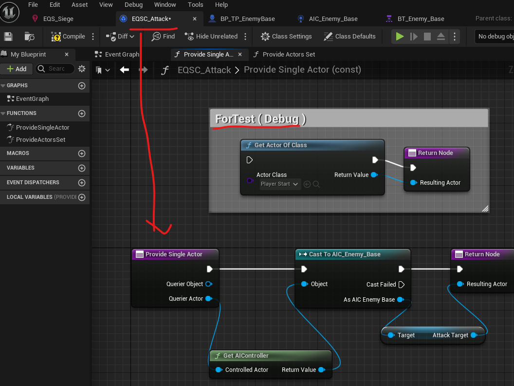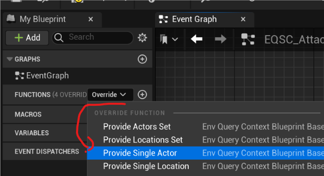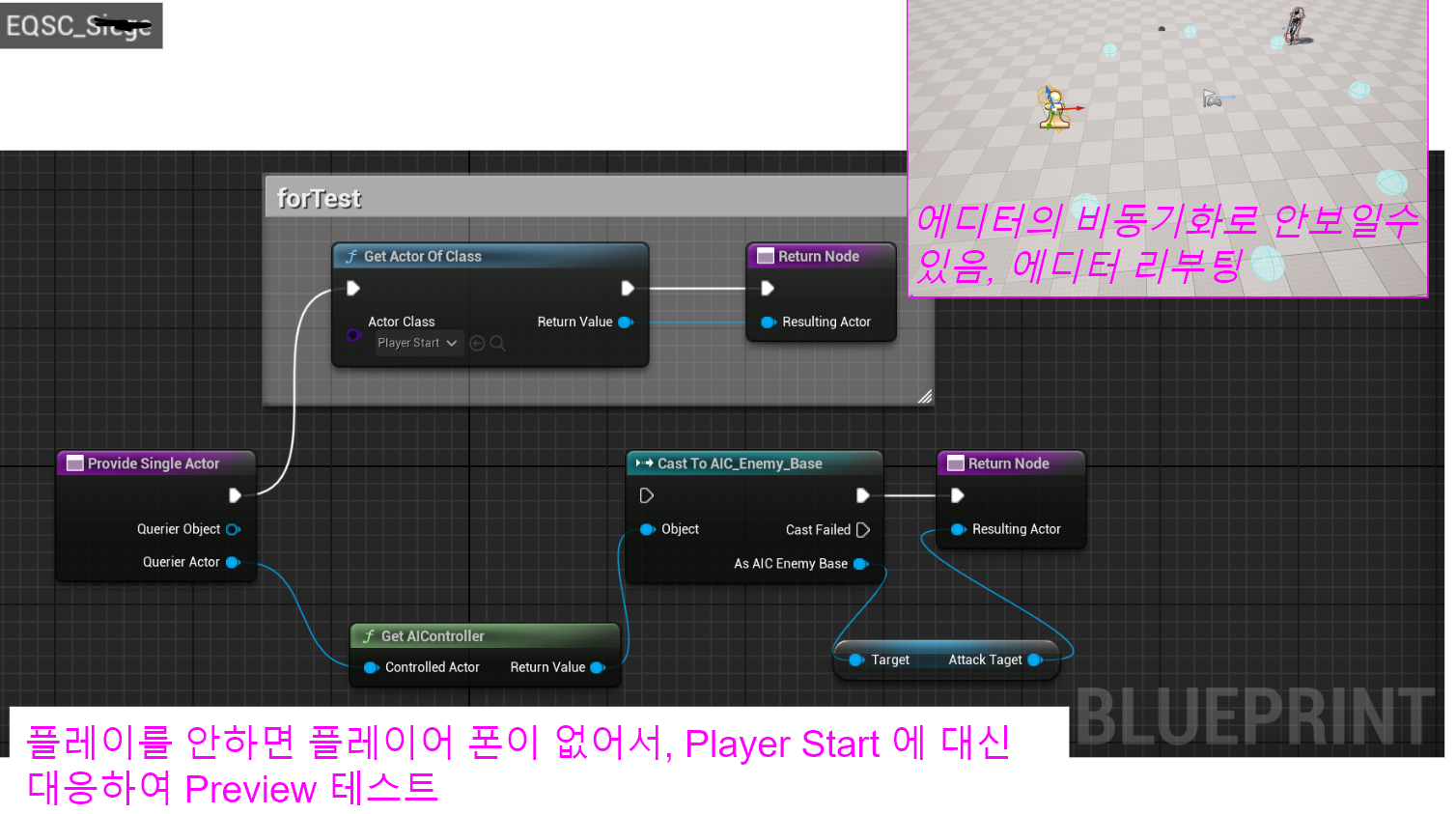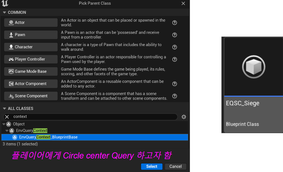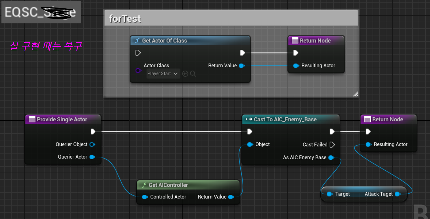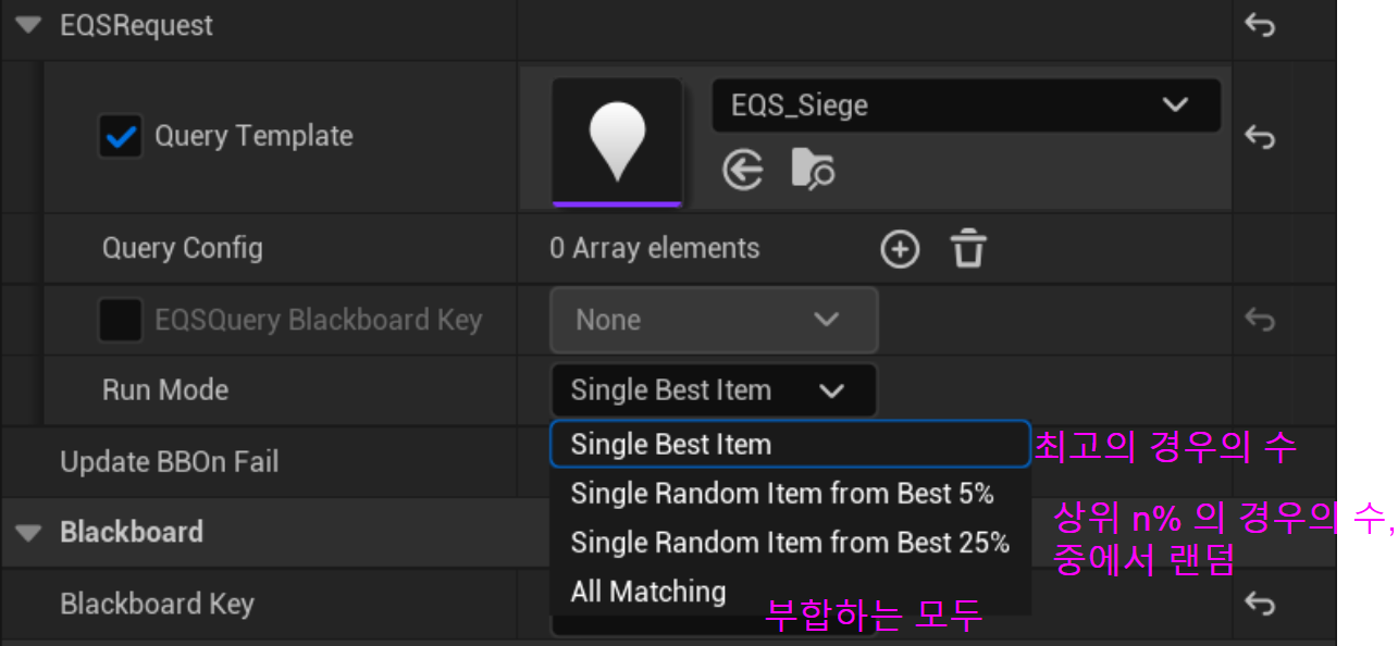 - 이 함수를 사용하면 EQS 시스템은 사용자가 지정한 기준에 따라 하나의 액터를 선택하고, 해당 액터를 기반으로 쿼리를 실행합니다.