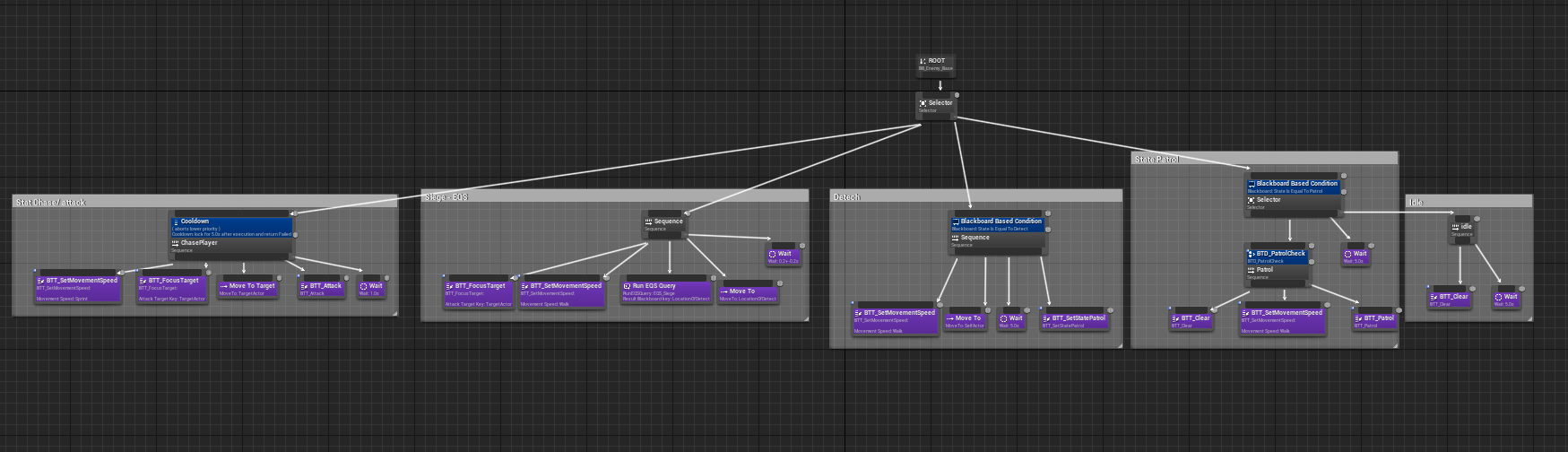 - 예를 들어, AI가 적을 추적할지, 아이템을 찾을지, 플레이어와의 상호 작용을 할지 등을 결정하는 데 사용됩니다.
