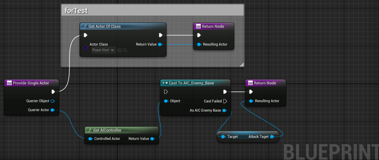 - 이는 예를 들어, 특정 조건을 만족하는 가장 가까운 적 캐릭터, 특정 유형의 아이템 또는 특정 위치에 있는 액터 등을 선택하는 데 활용될 수 있습니다.