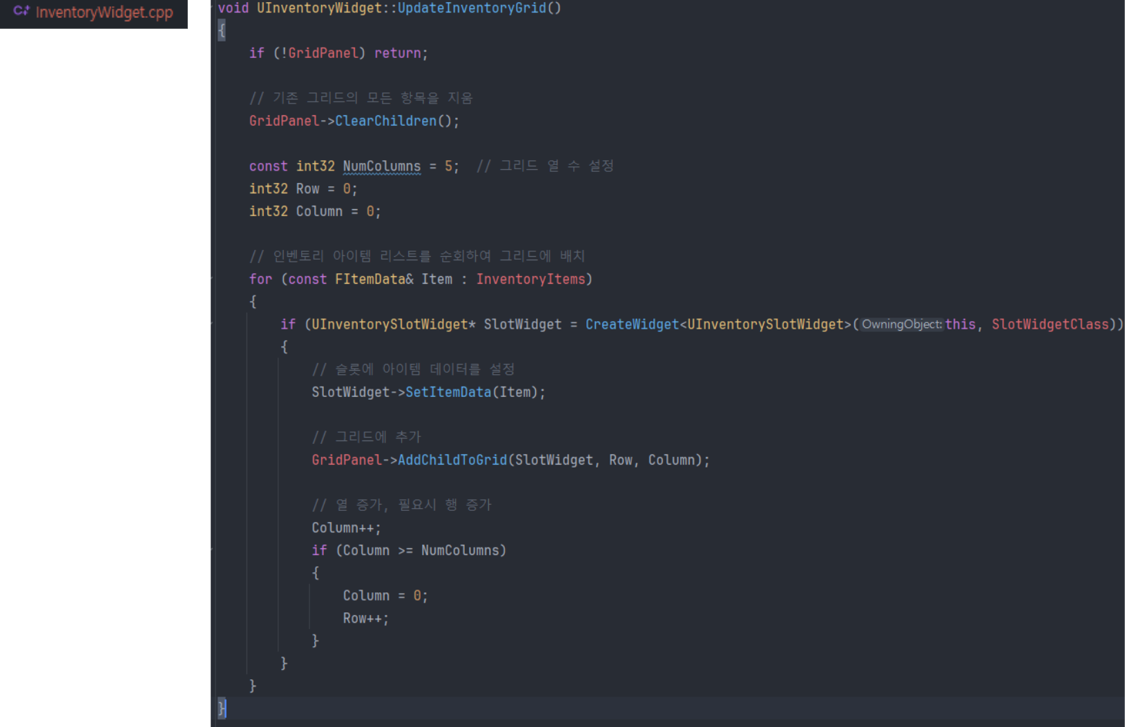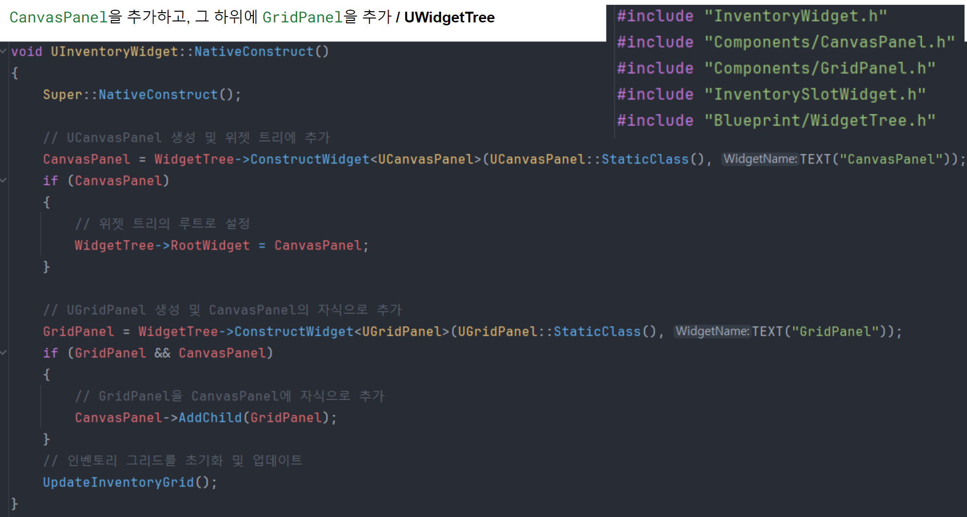 // 인벤토리 컴포넌트 또는 슬롯 위젯 클래스, 그리드 패널이 유효하지 않으면 리턴