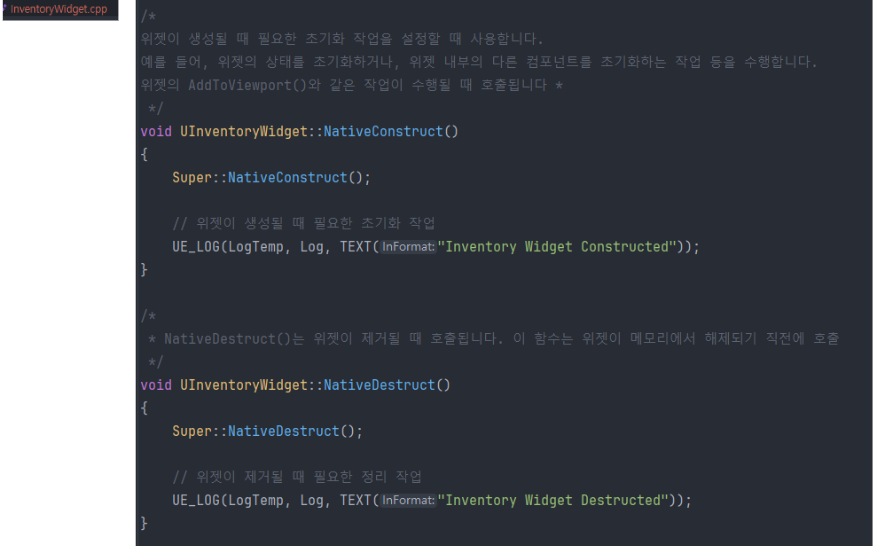 UE_LOG(LogTemp, Warning, TEXT("Inventory Widget Destruct"));