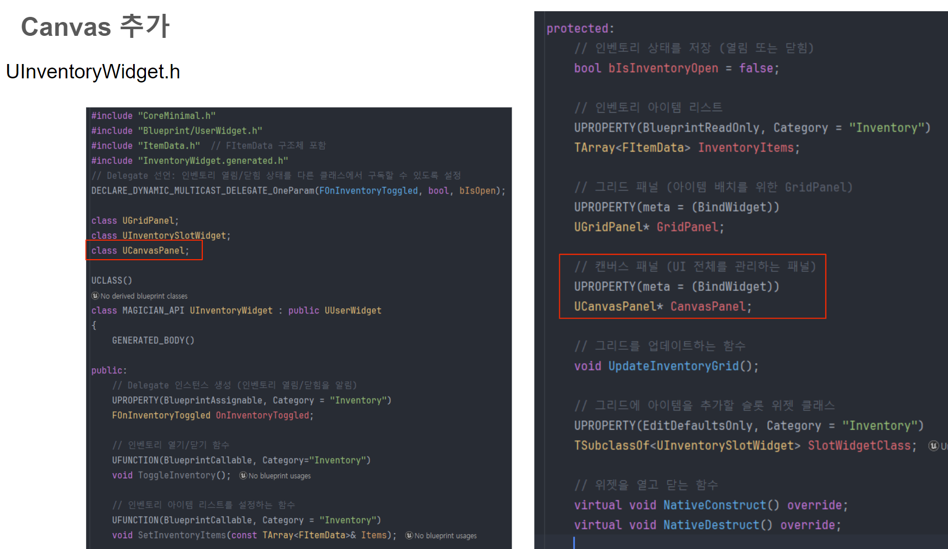 // UCanvasPanel 생성 및 위젯 트리에 추가
