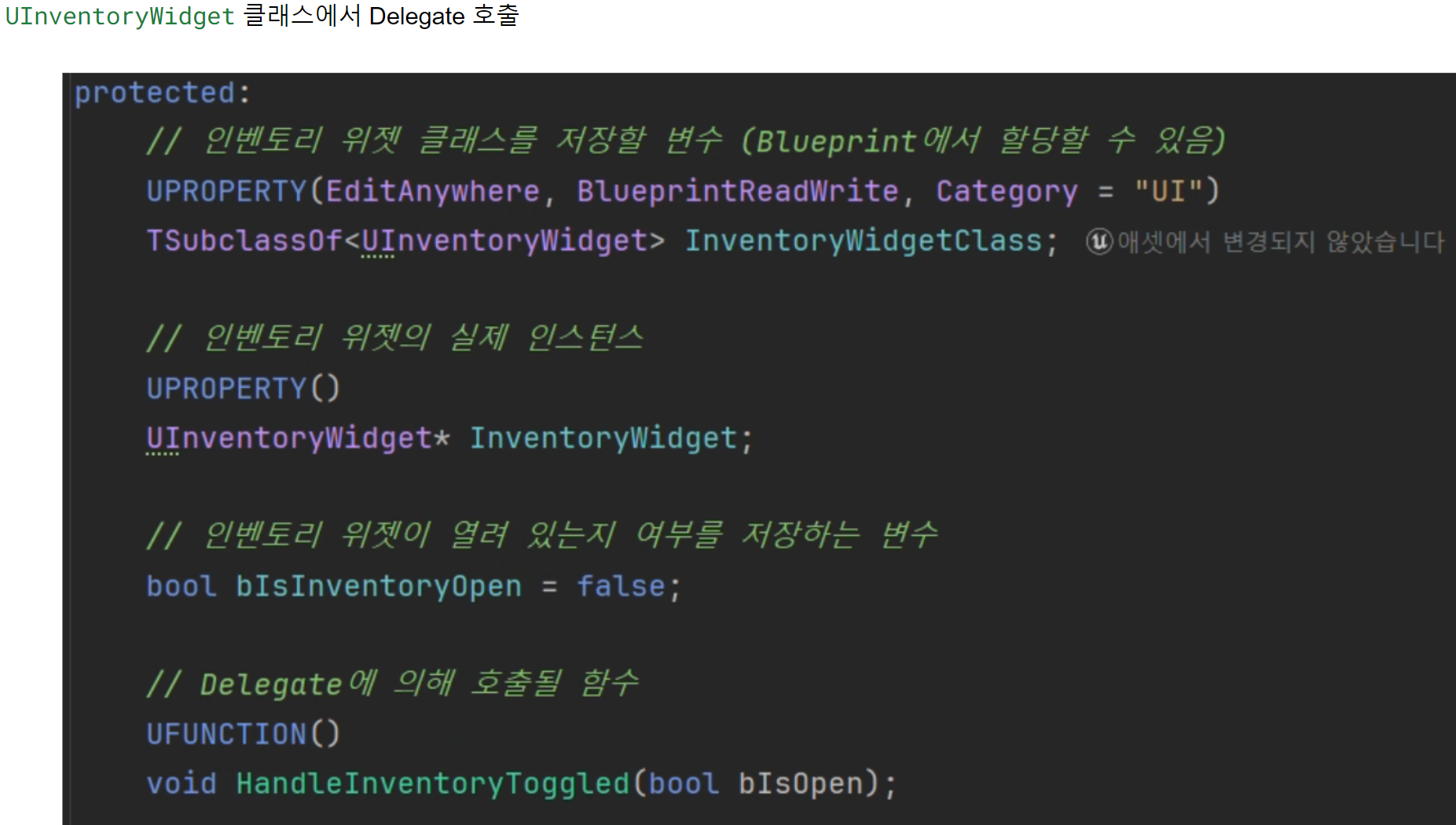 // InventoryComponent의 델리게이트에 함수 바인딩