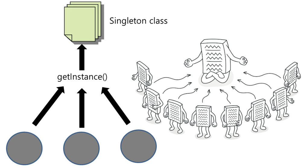 싱글톤 패턴(Singleton Pattern)은 한 클래스에 오직 하나의 인스턴스만 존재하도록 보장하고, 어디서든지 이 인스턴스에 전역적으로 접근할 수 있게 하는 디자인 패턴입니다. 주로 애플리케이션 전반에서 공유되는 전역 상태 관리나 리소스 관리에 사용됩니다.