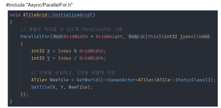 - ENamedThreads::GameThread : 이 코드는 작업을 메인 게임 스레드에서 실행하도록 지정합니다.