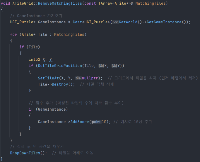 if (MachingTiles.Num() > 0) // 매칭이 있을 경우