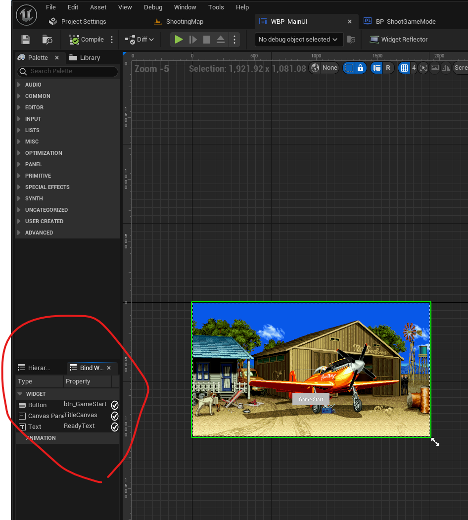기존의 있던 WBP_MainUI를 만든 클래스에 접목시킨뒤 바인딩 한다