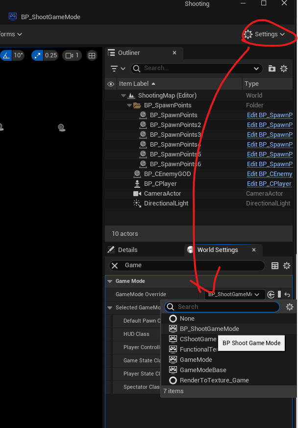 CShootGameMode 클래스를 상속받은 'BP_GameMode'이름의 Blueprint를 하나 만든다