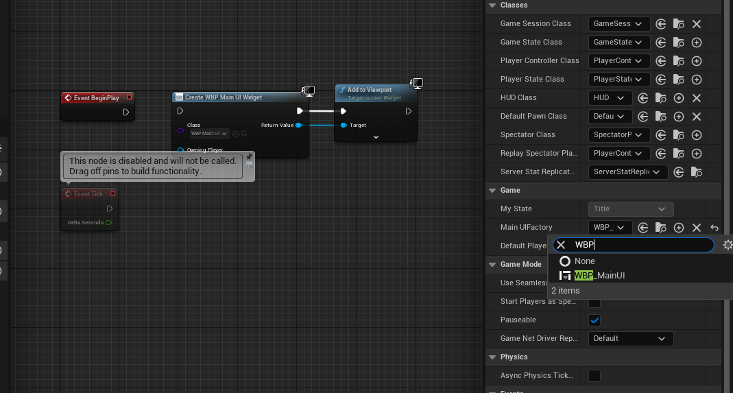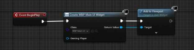 'BP_GameMode' 블루프린트로 해당 만든 MainUI윗젯를 BeginPlay()로 시작하면 UI를 띄워보자