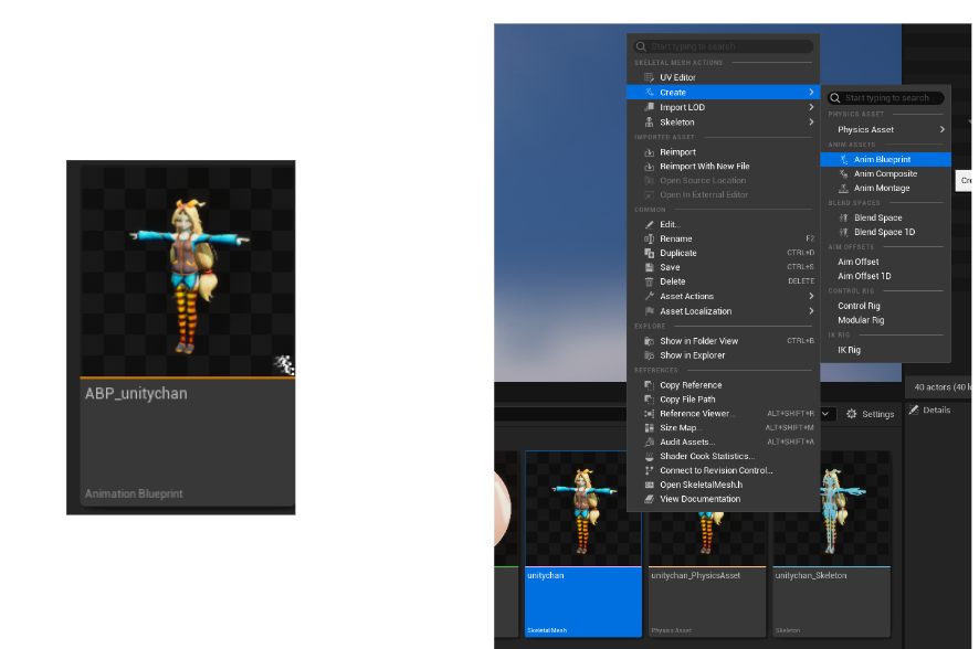 - 해당 애니메이션도 UnityChan이 쓸수있게 리타겟팅으로 만든다