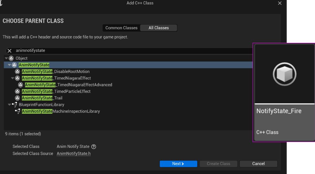 - AnimNotifyState를 상속받은 C++ 클래스를 하나 만든다